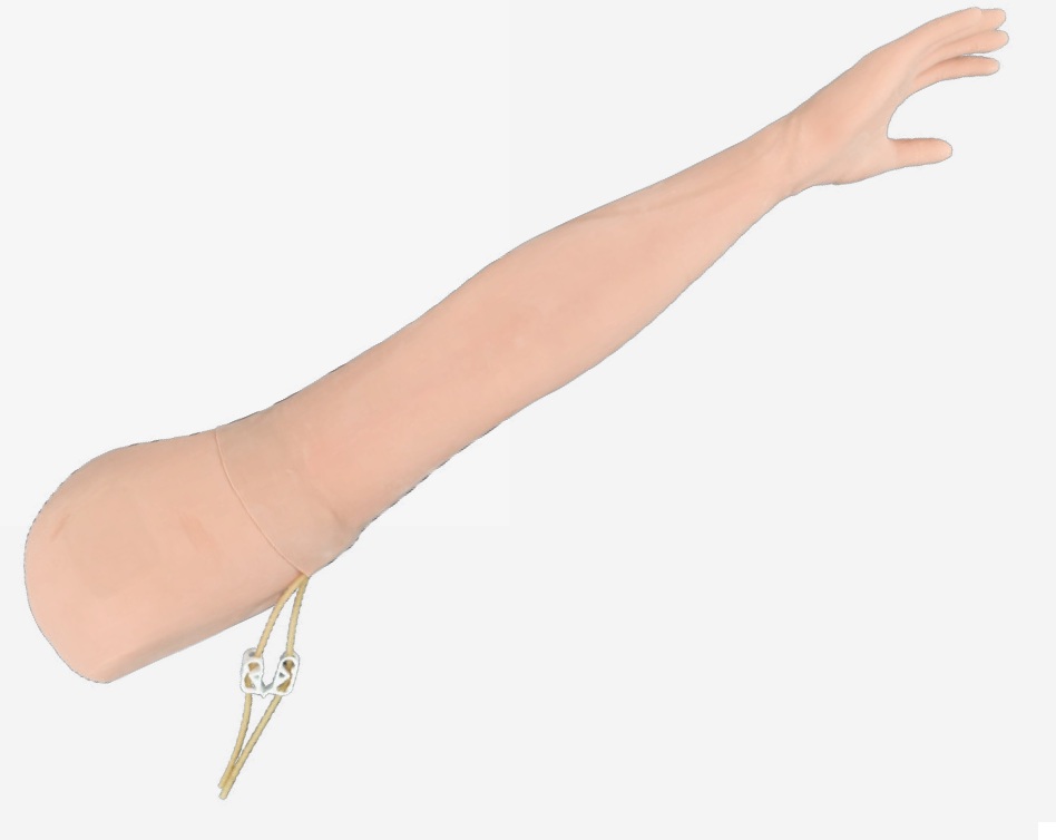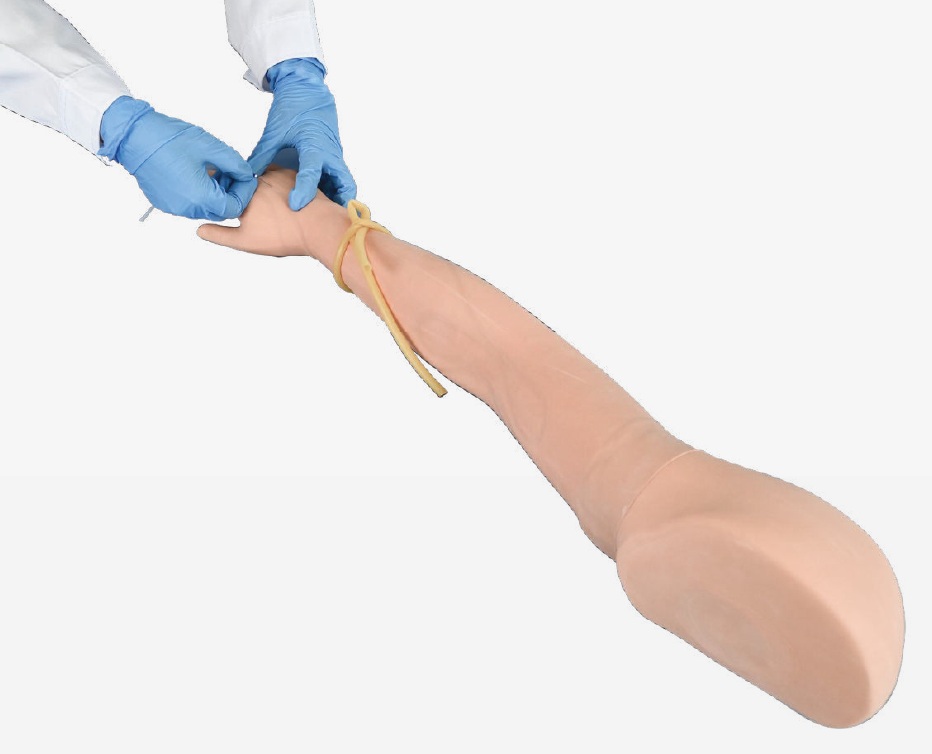 El brazo de venopunción proporciona acceso ilimitado a las venas principales de la mano y el brazo. La superficie dorsal de la mano cuenta con un extenso sistema vascular, lo que permite a los estudiantes practicar la venopunción y la infusión en todas las localizaciones primarias y secundarias. Este brazo está diseñado para simular con precisión la venopunción, la canulación intravenosa y la infusión intravenosa.