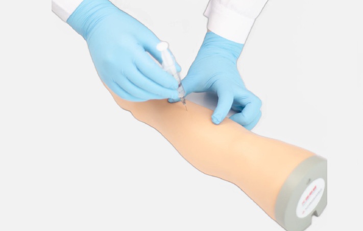 Un modelo de entrenamiento realista con una precisión y un realismo excepcionales, enfocado principalmente en el procedimiento de infusión intraósea en lactantes.