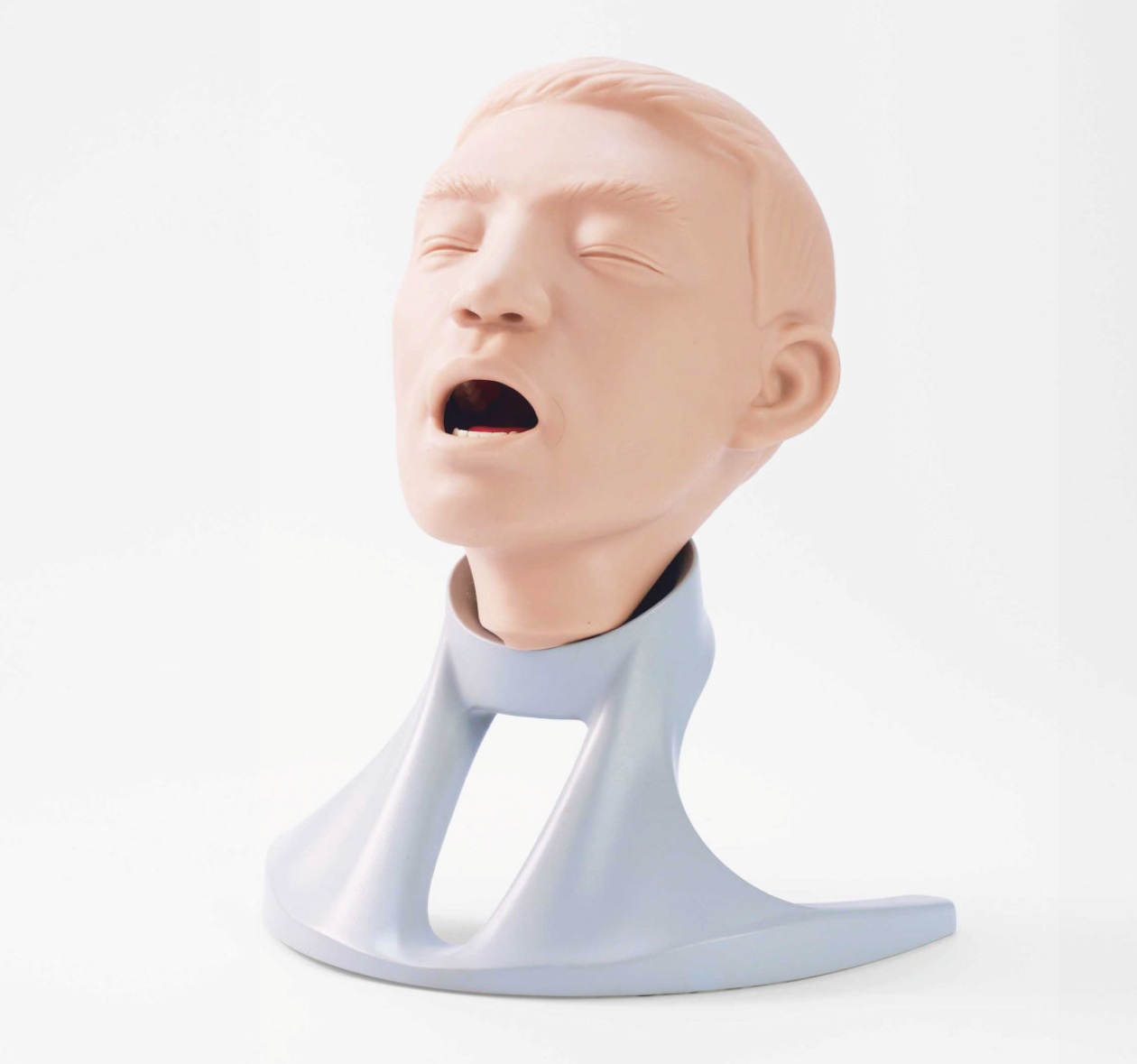 Este modelo simula la cabeza y el cuello de un adulto, diseñado para el entrenamiento y la evaluación en procedimientos de hisopado orofaríngeo, con una apariencia realista y retroalimentación táctil. Reproduce con precisión las cavidades bucal y nasal de un adulto, incluyendo estructuras como los labios, las mejillas, el paladar, los dientes, la lengua y la úvula, todas alineadas con la anatomía humana real.