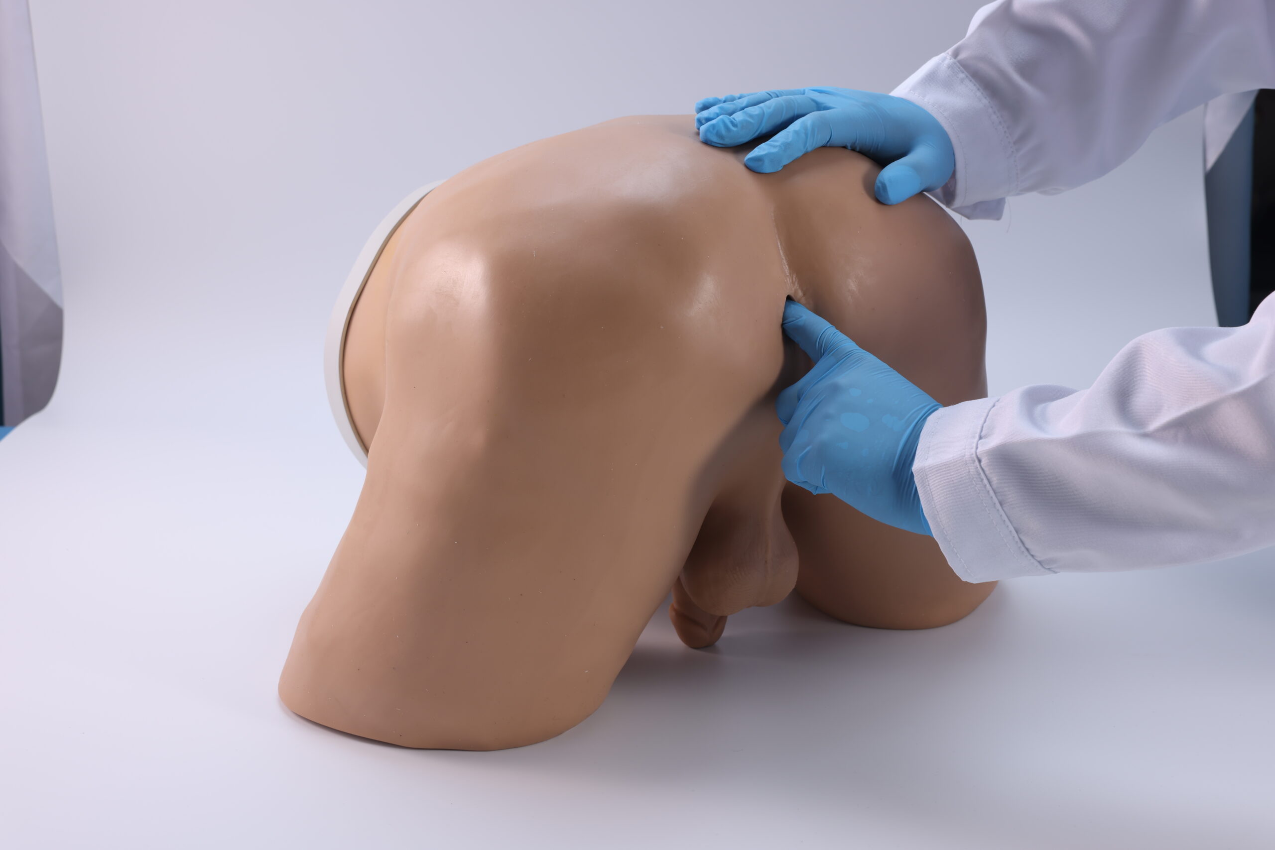Simulando la posición pélvica de los glúteos, la estructura anatómica es completa y las marcas óseas superficiales son nítidas. Se han diseñado seis componentes reemplazables de próstatas normales y seis tipos de próstatas patológicas, que proporcionan una retroalimentación táctil realista. Ideal para el entrenamiento en el examen digital rectal de la próstata.