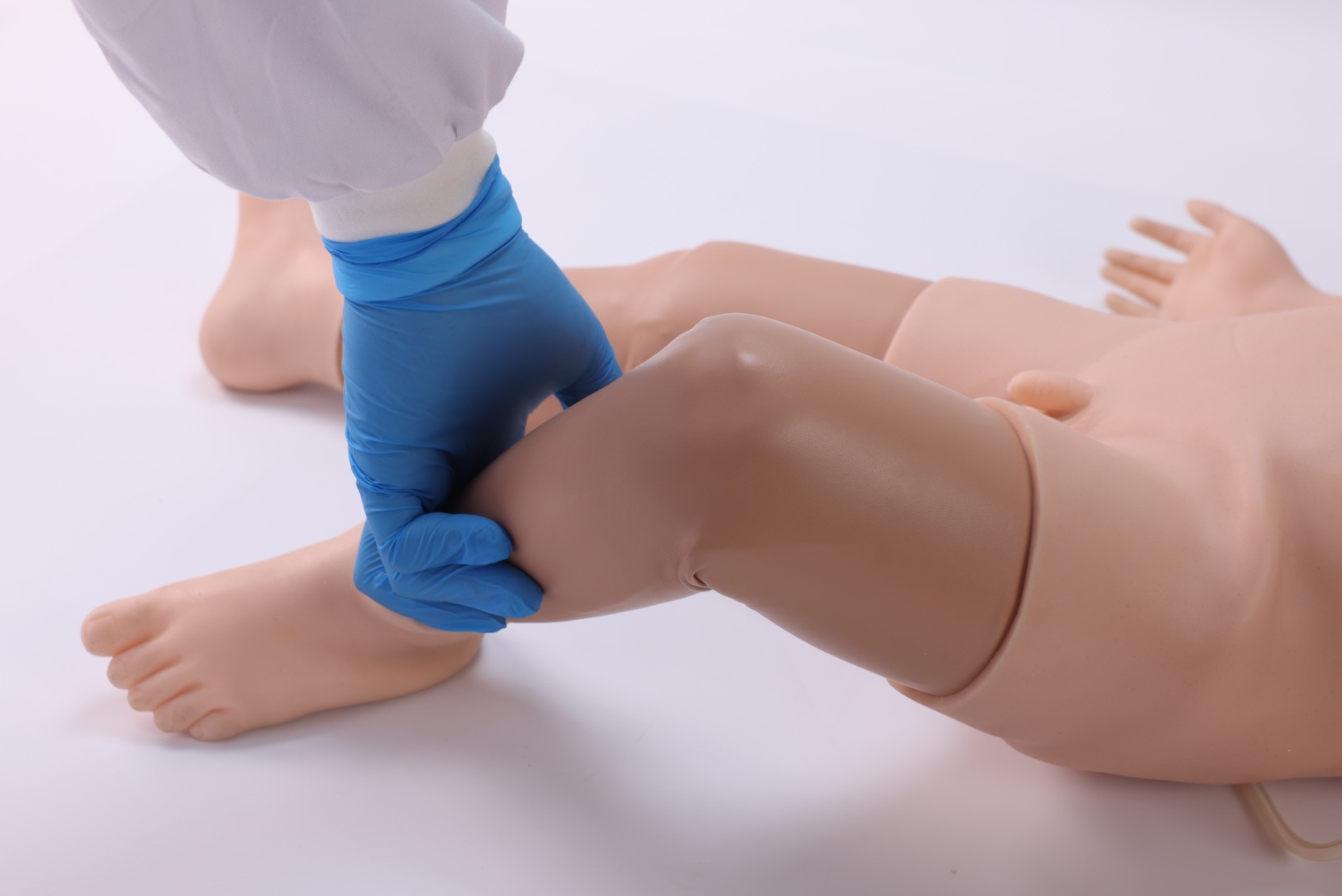 - El modelo cuenta con piel, tejido subcutáneo y muscular simulados flexibles, con prominentes puntos de referencia óseos en toda la superficie.
