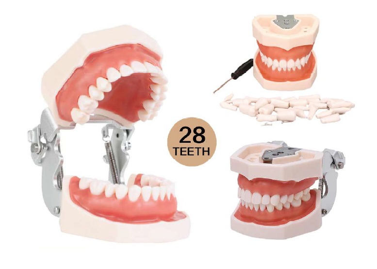 Tipodonto dental con 28 dientes desmontables con desarmador. Modelo para prácticas dentales.